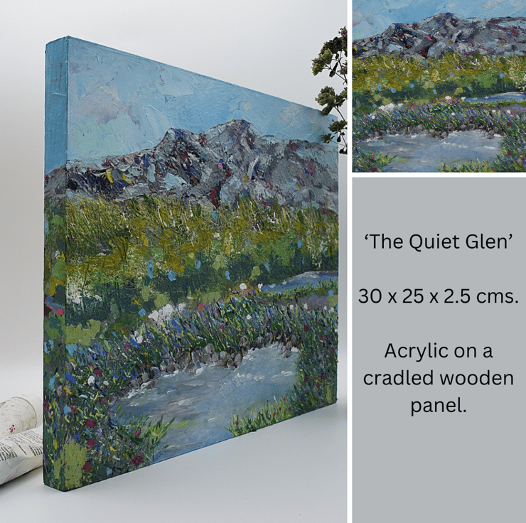 (81) I've called this acrylic work, "The Quiet Glen". Glen Clova is part of the Cairngorms National Park and is known locally as the 'quiet glen' as there are fewer tourists along its numerous pathways and routes through hills, woodland and mountain ranges. This would make an ideal gift for anyone who enjoys the great outdoors.