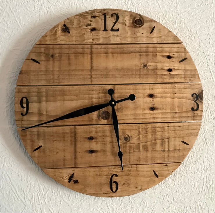 Clocks are all sanded and finished with Danish oil to help nourish the wood and to accentuate the grain and unique distressed appearance of the wood.