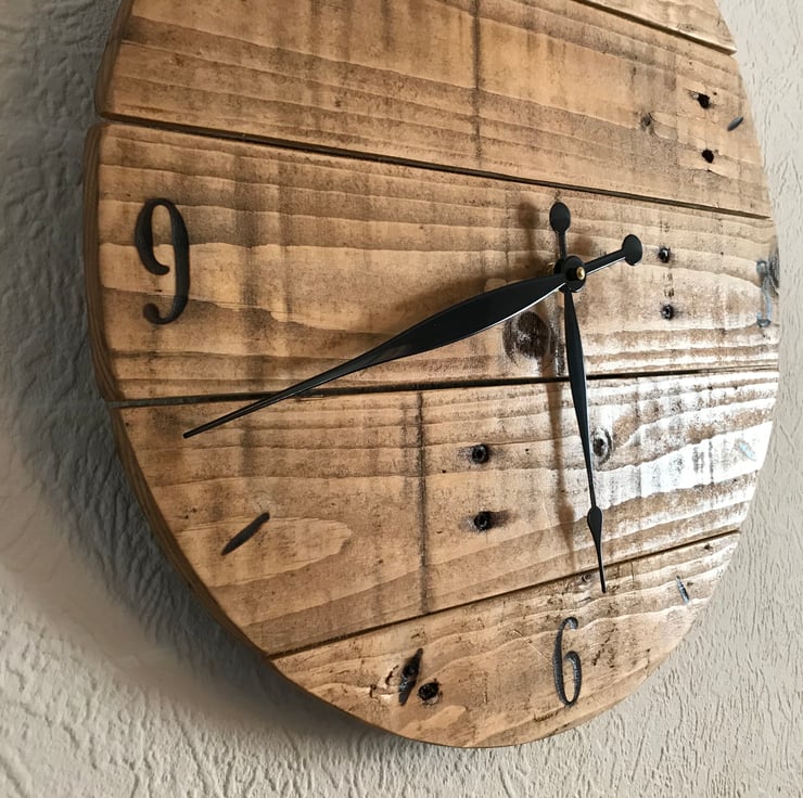 Add rustic charm to any room with a hand made, one of a kind clock. Due to the unique distress marks of the reclaimed wood, no two clocks will ever be the same.