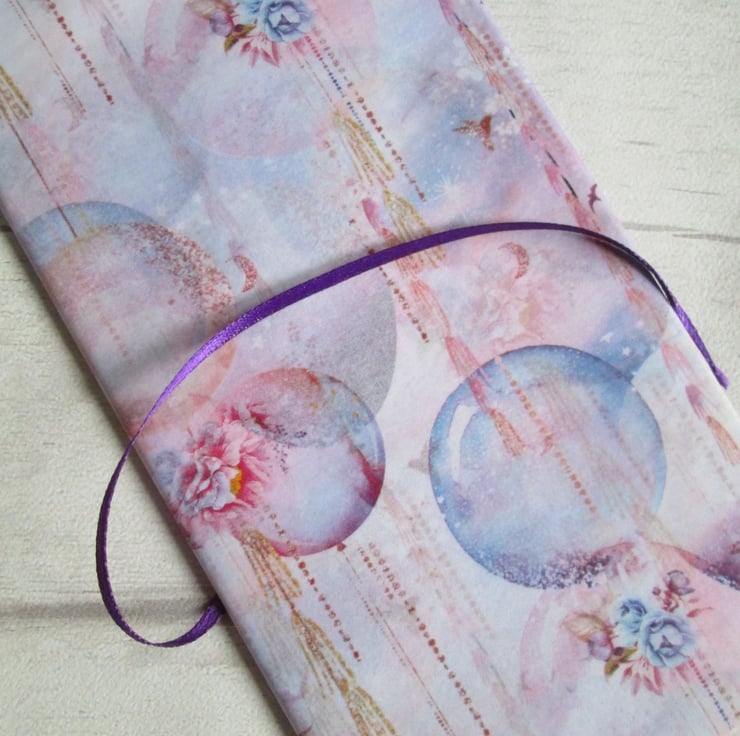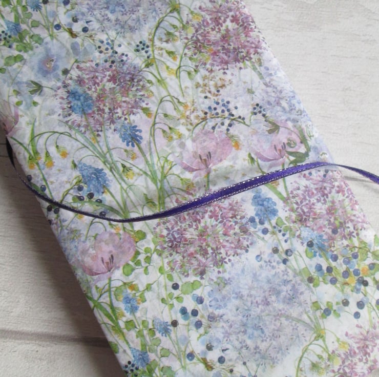 Allium floral print with silver edged purple ribbon