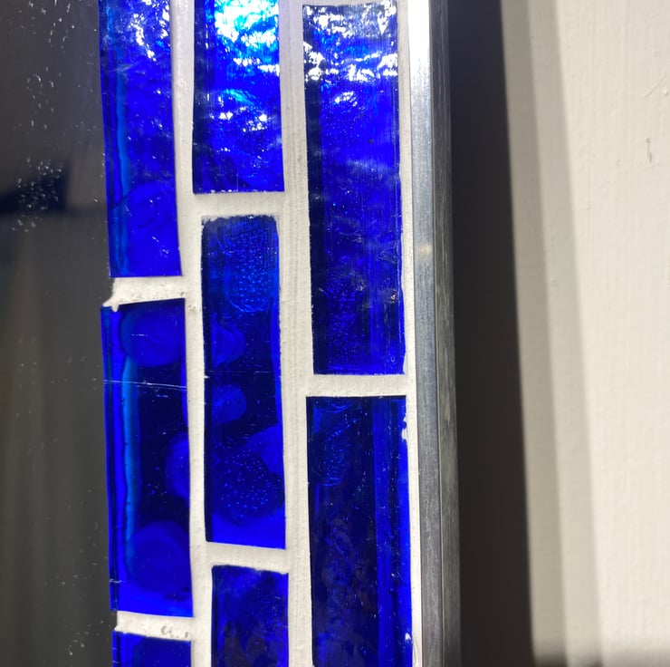 Unique one of handmade high quality mirror with stunning Cobalt Blue contoured glass and polished handmade aluminium frame. Would look great in any room, wall hung. Dimensions are as follows, H-495mm W-335mm D-15mm. Actual mirror size, H-390mm W-222mm.