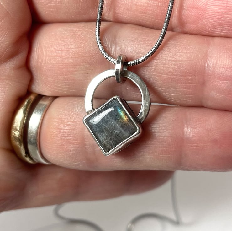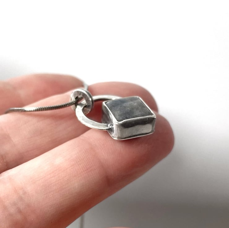 The stone is approximately 1cm square the pendant hangs about 2.3cm.