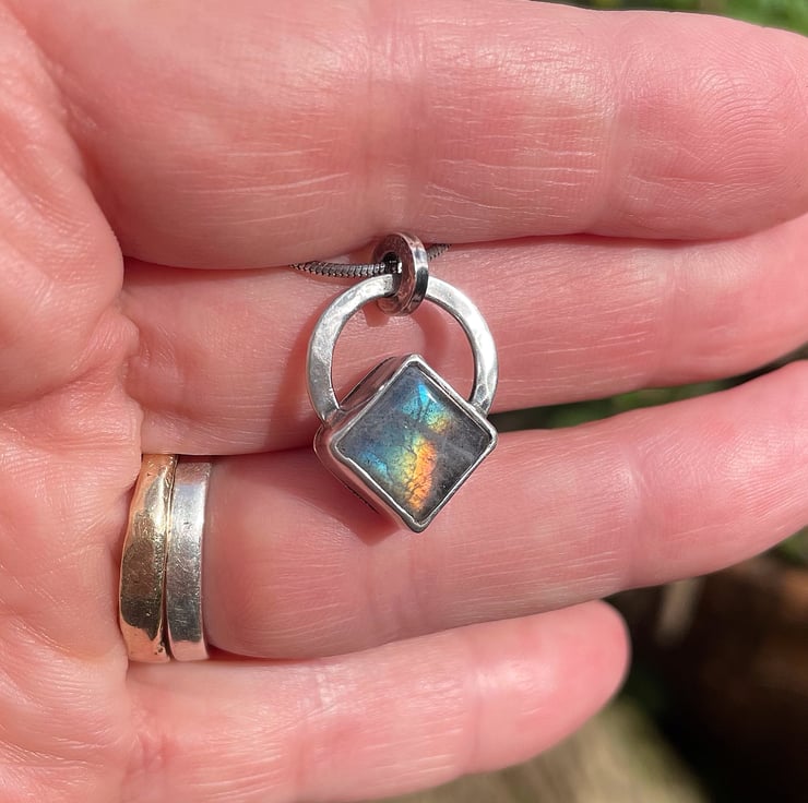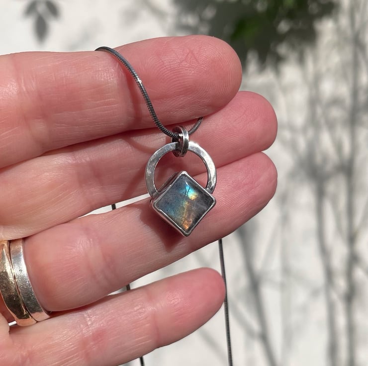The little stone has an amazing range of colours hidden within, but they don’t all flash at once. Different angles and different light reveal the magic. In some light it is a subtle stormy grey in others a blast of colour.
