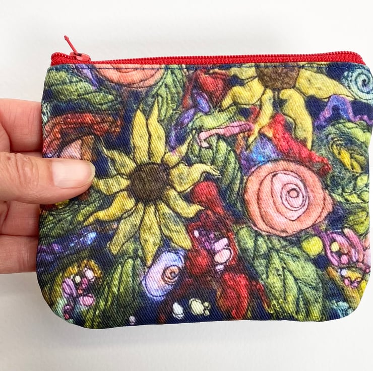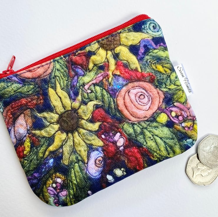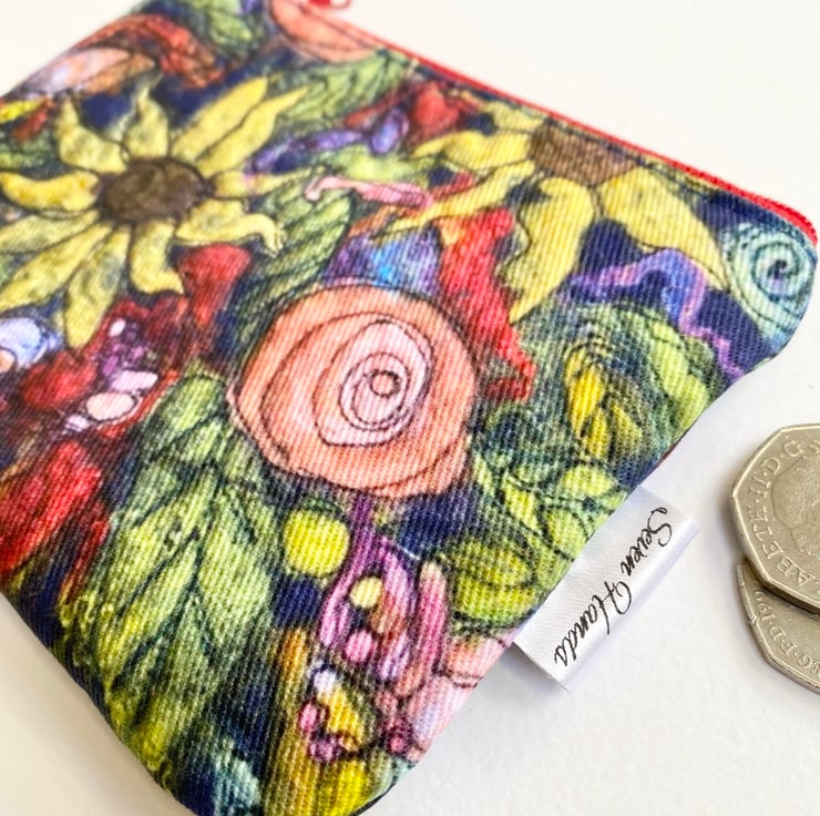 The bag measures 11 x 14 x 0.5cm approx. The zip opening width is 11.5cm. All pouches are handmade 100% cotton drill fabric and they are padded. Cleaning instructions: Washable at 30 degrees with similar colours, Do not bleach, Do not wring out, Short spin only, Dry flat, Cool iron, through a cloth, Do not tumble dry, Can be dry cleaned.