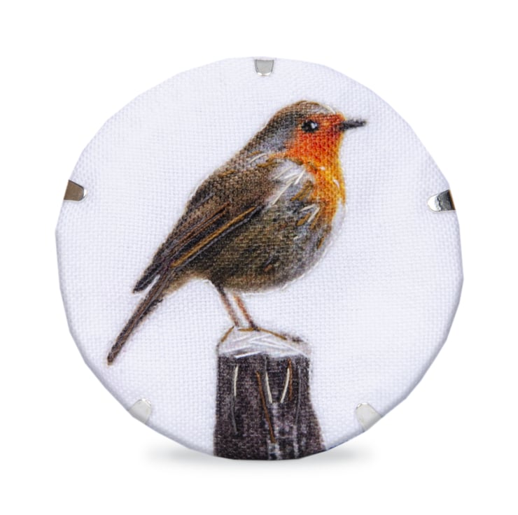 I make fabric pictures, mounted in frames of different sizes, as well as little pictures displayed in tins - and now I'm adapting some of my designs, to be little wearable pieces of fabric-art.