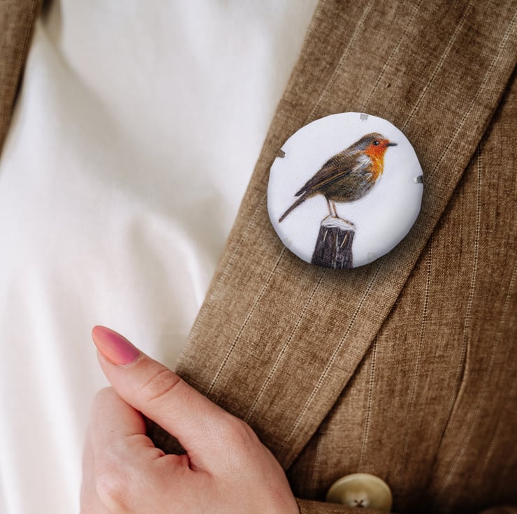 A hand embellished, fabric brooch, which I have carefully stitched and mounted onto a silver-plated brooch back.