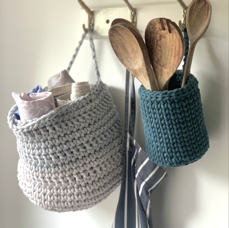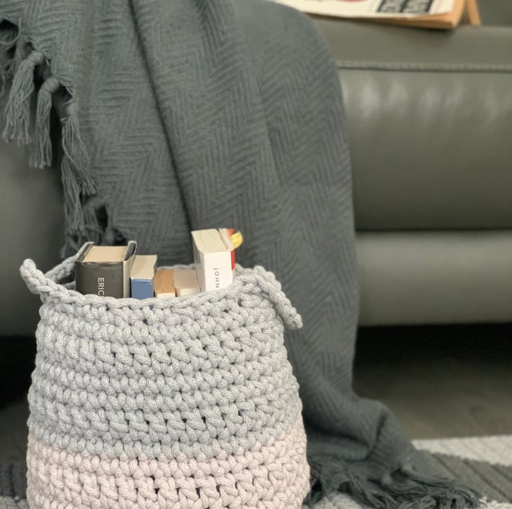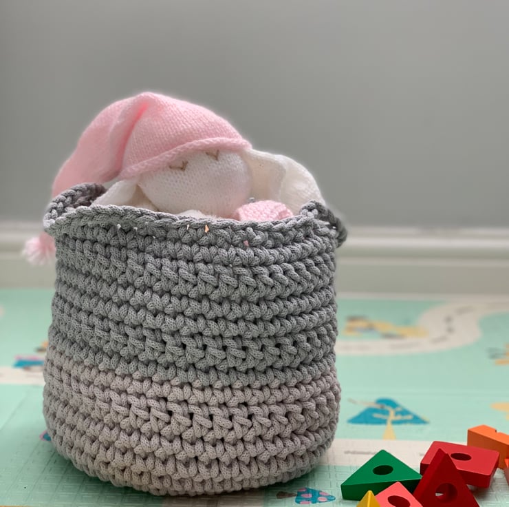 Made with 100% recycled cotton cord and jute on the rim. Allergy free and baby friendly material.