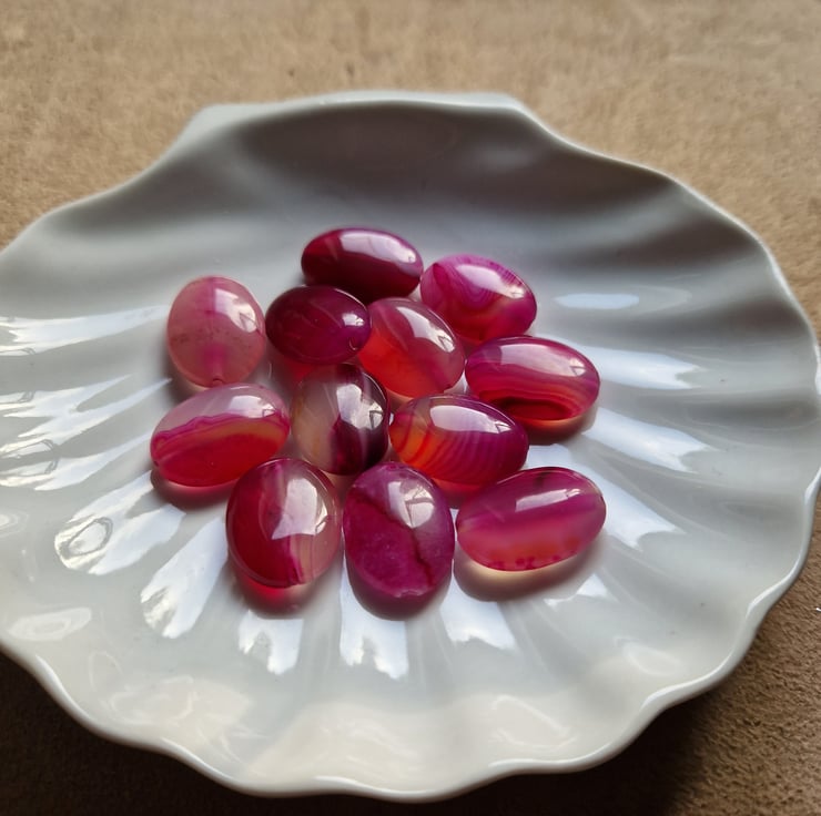 Hot pink agate beads (dyed) flat oval - add some colour!