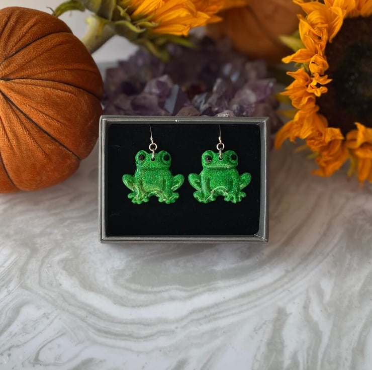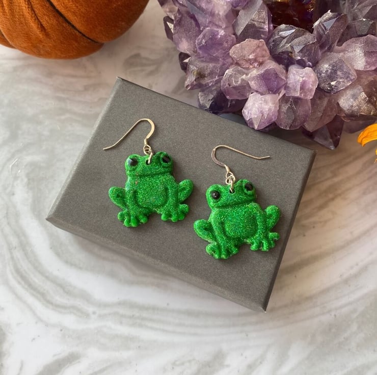 Current making time is 10 - 14 working days from time of ordering. These whimsical earrings would make an ideal gift for someone who loves frogs and amphibian jewellery.