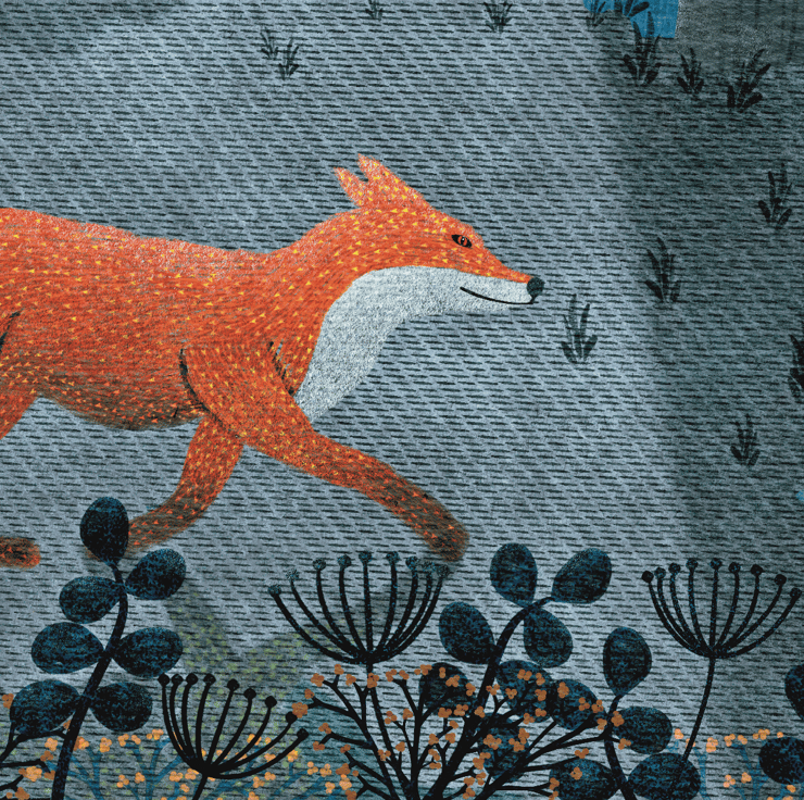 I originally drew this in December 2022. So I was feeling very wintery! I was inspired by night walks I had been doing in some nearby ancient woodland. We would hear the owls every time we walked through, although I have never actually seen a fox there!