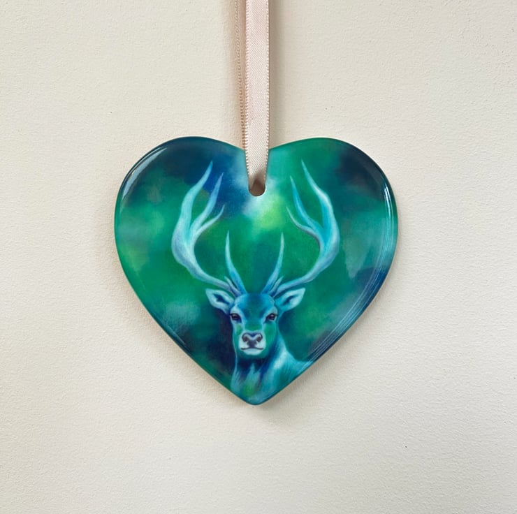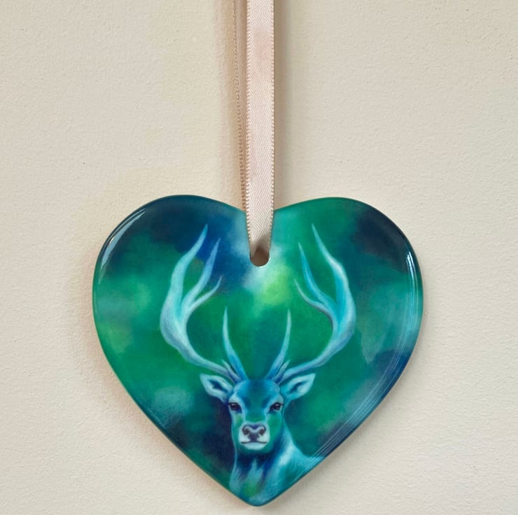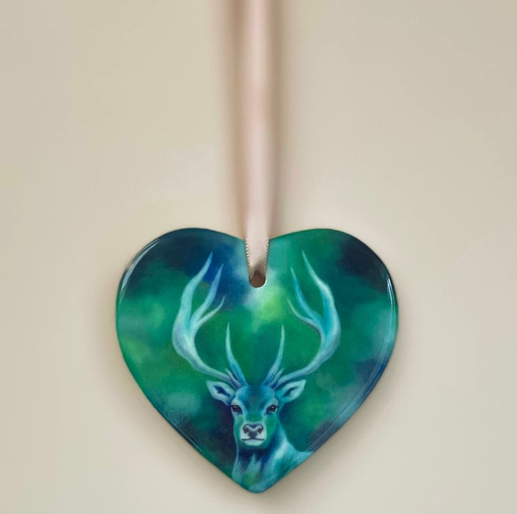 This beautiful flat, glossy, heart shaped ceramic ornament shows off my Stag illustration beautifully! It makes a very elegant year round home decoration, as well as the perfect Christmas Tree ornament!