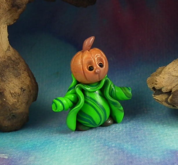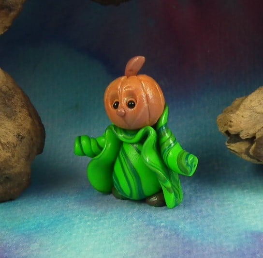 Hock is a Pumpkin-head Gnome, arriving in the Gnome Village in good time for the Autumn Equinox ... witch, cauldron and cat available separately ...