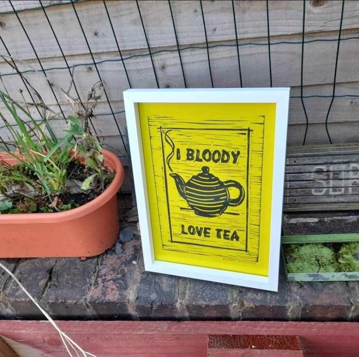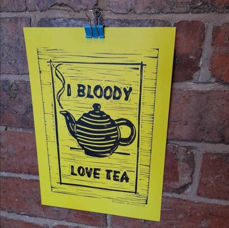 This is another edition of my "I bloody love tea" print - this one is A4, yellow and black.