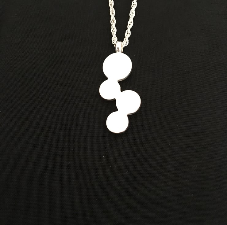 The pendant measures 1.25 in x 0.5 in and is finished with an 18 in chain.