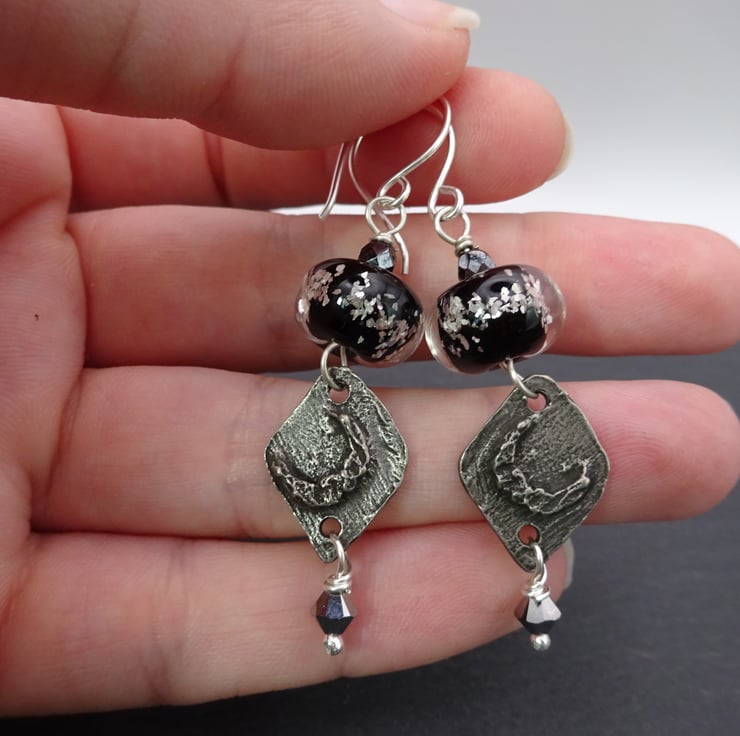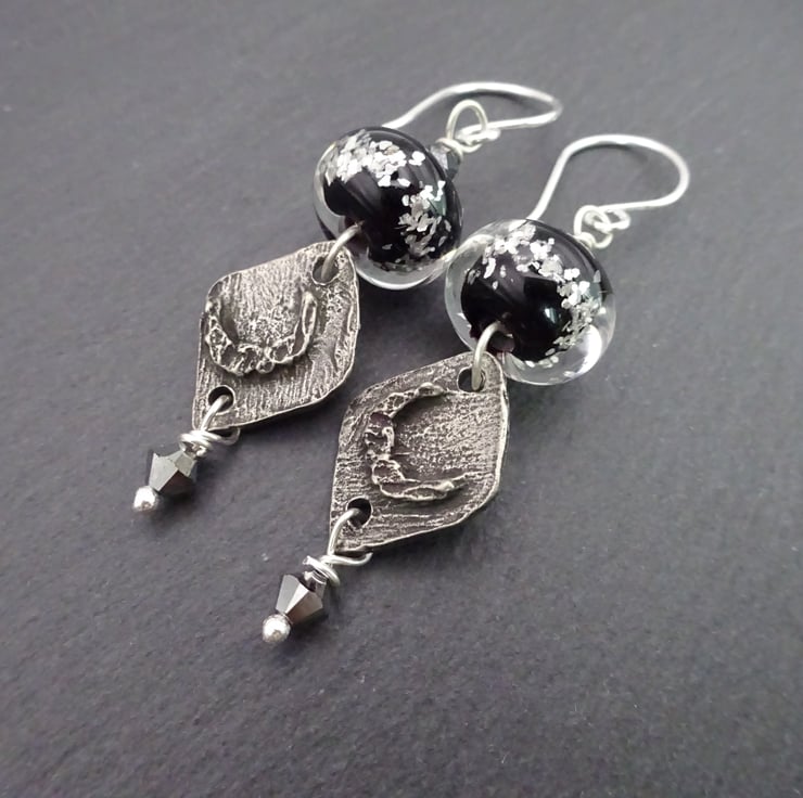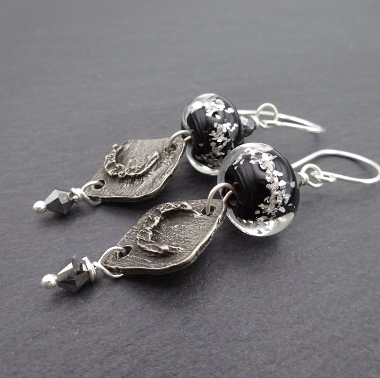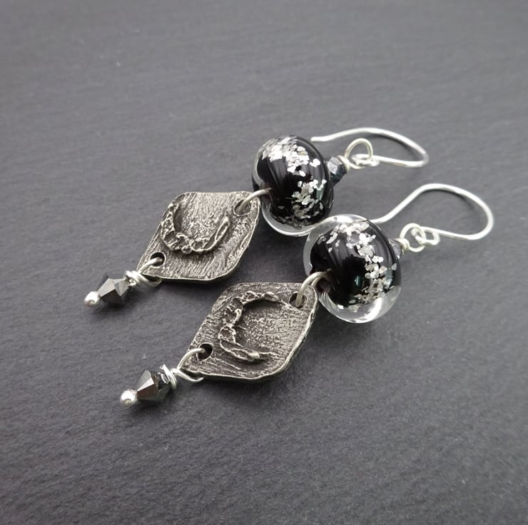 The lampwork beads have been handmade by me using black glass with silver glitter.