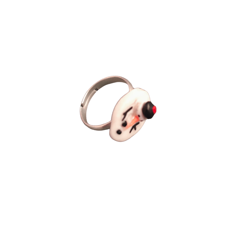 Handmade polymer clay melted snowman ring
