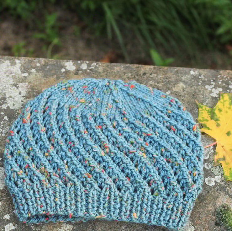 Hand knit lace hat women's