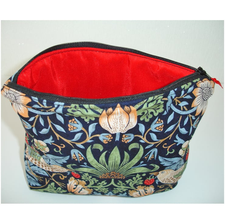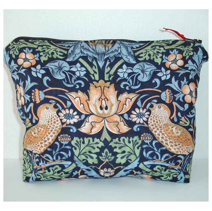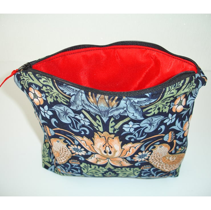 A beautiful Liberty of London Arts and Crafts Movement fabric in the William Morris Design The Strawberry Thief - Colour Palate - Dark Blue / Red / Beige / Green.