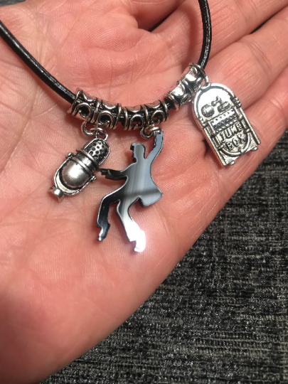 Antiqued silver plated - laser cut acrylic - leather