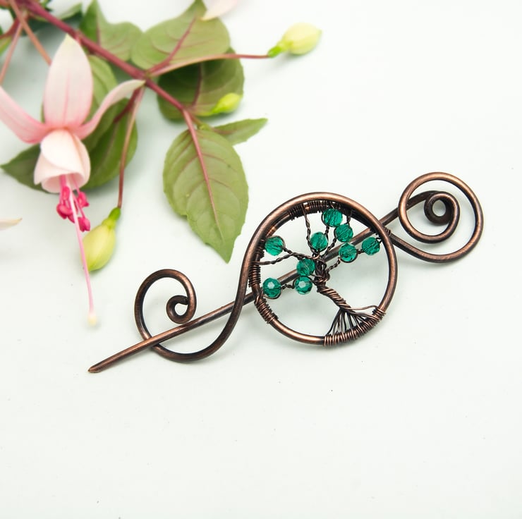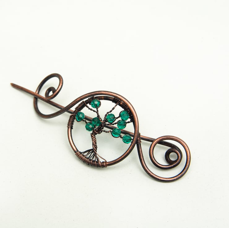 Tree of life shawl pin, It is wrapped with l green crystal stones