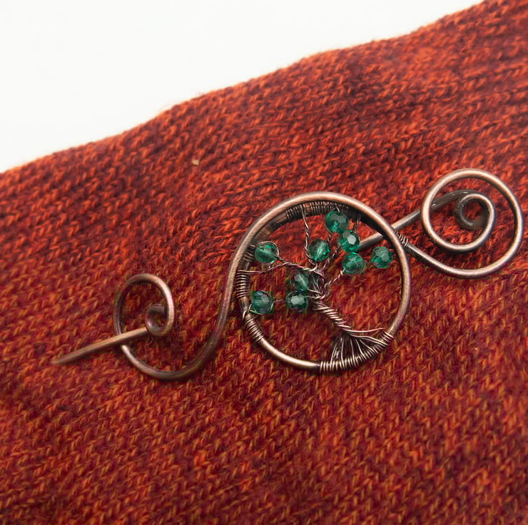 Antique copper shawl pin,HandmadeTree of life shawl pin, sweater brooch,