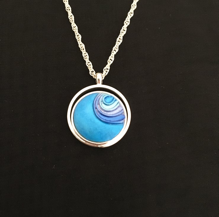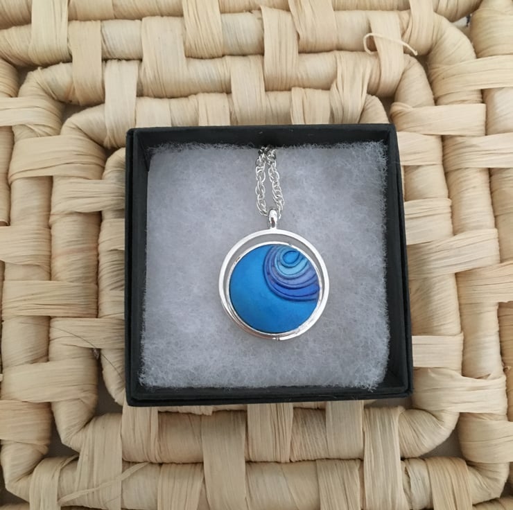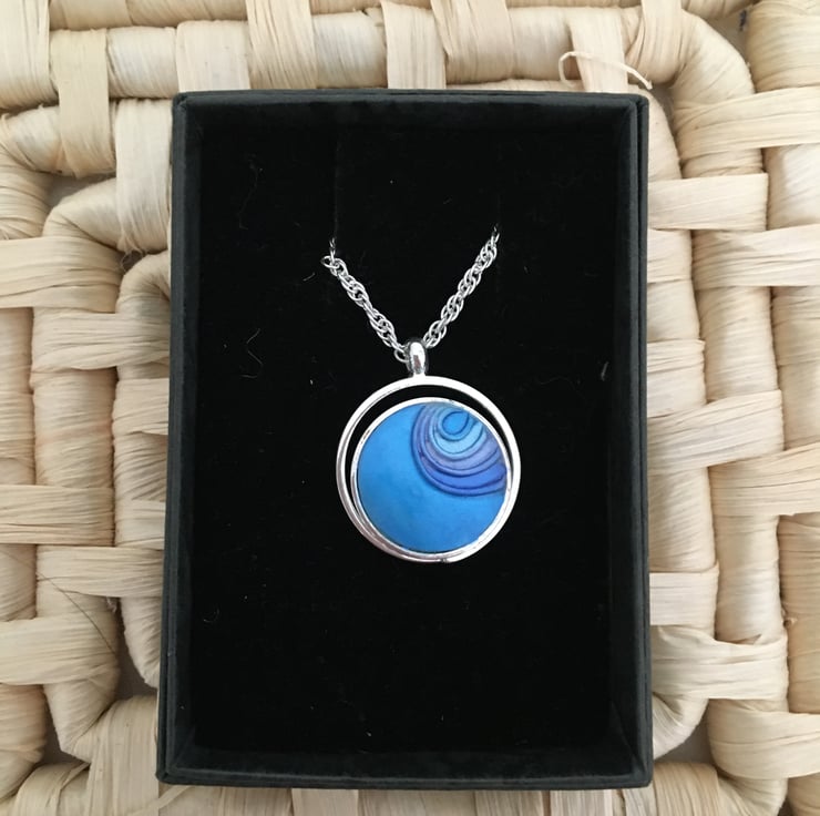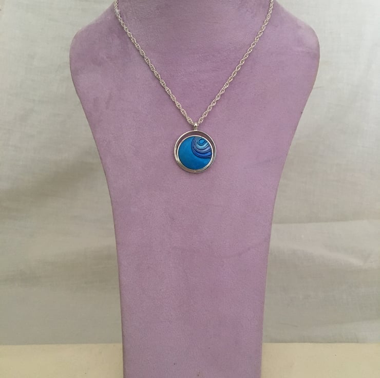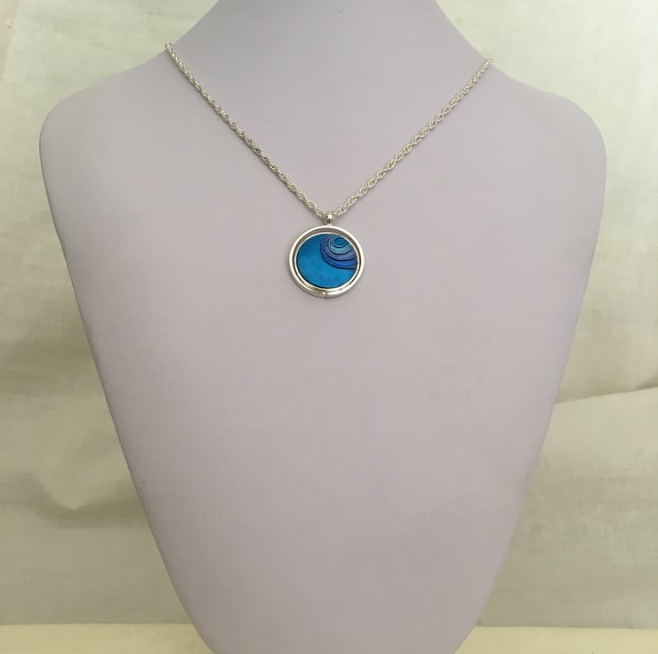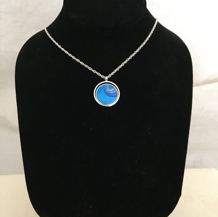 A vibrant blue centred pendant in a quality silver plated setting.