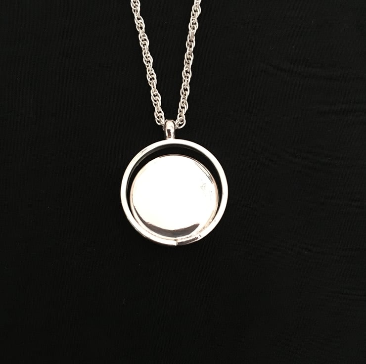 The pendant measures 1 in x 1 in and is finished with an 18 in chain.