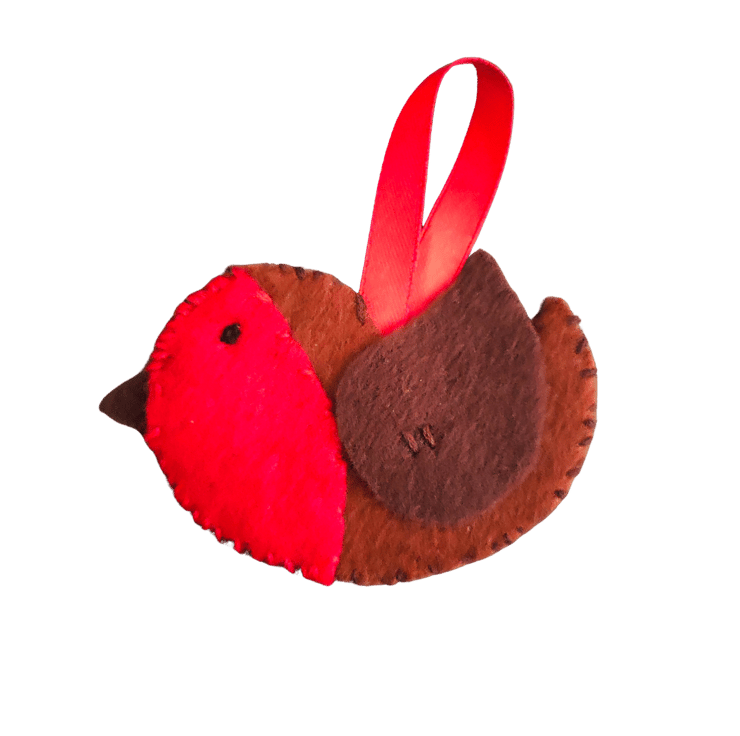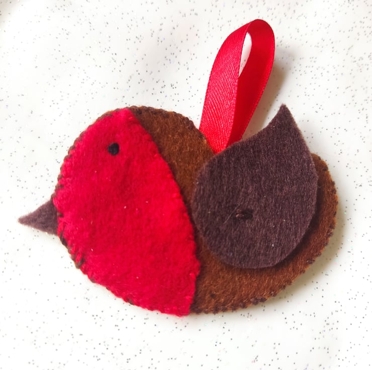 Cut out and stitched by hand , this felt robin on a red ribbon will be a lovely addition to your Christmas tree