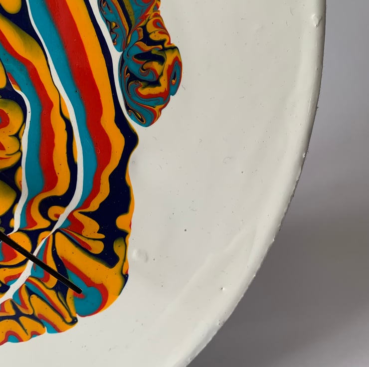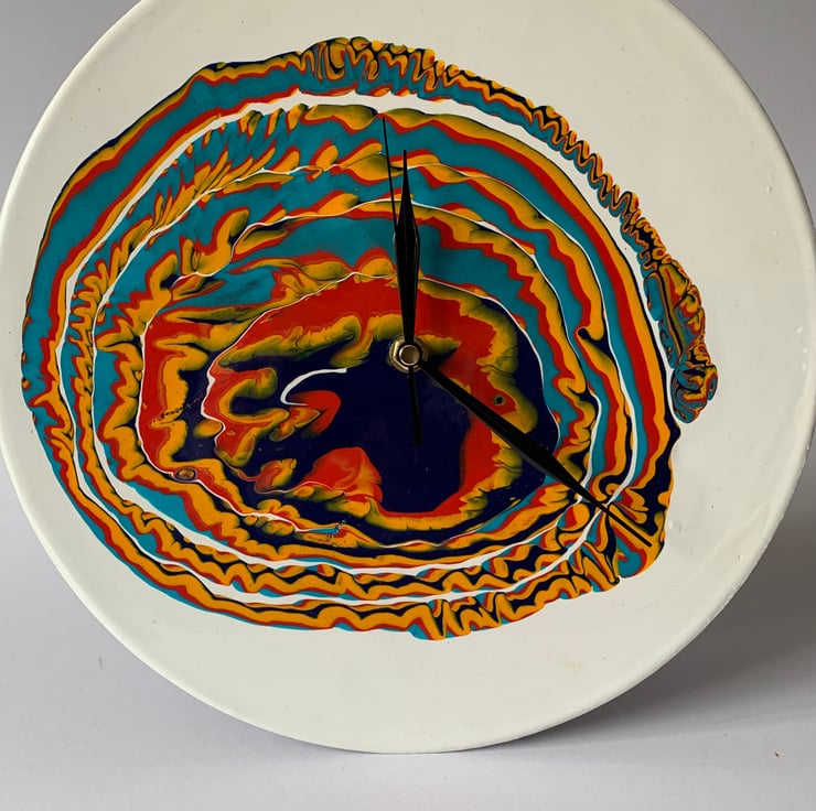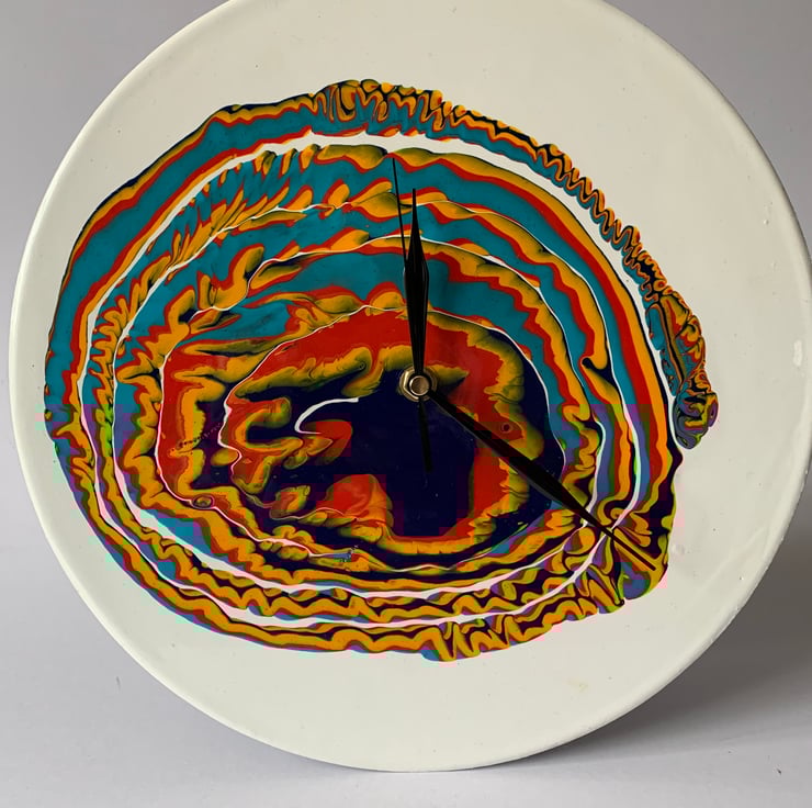 This pattern was created by a 3 colour pour, directly onto the off-white background.
