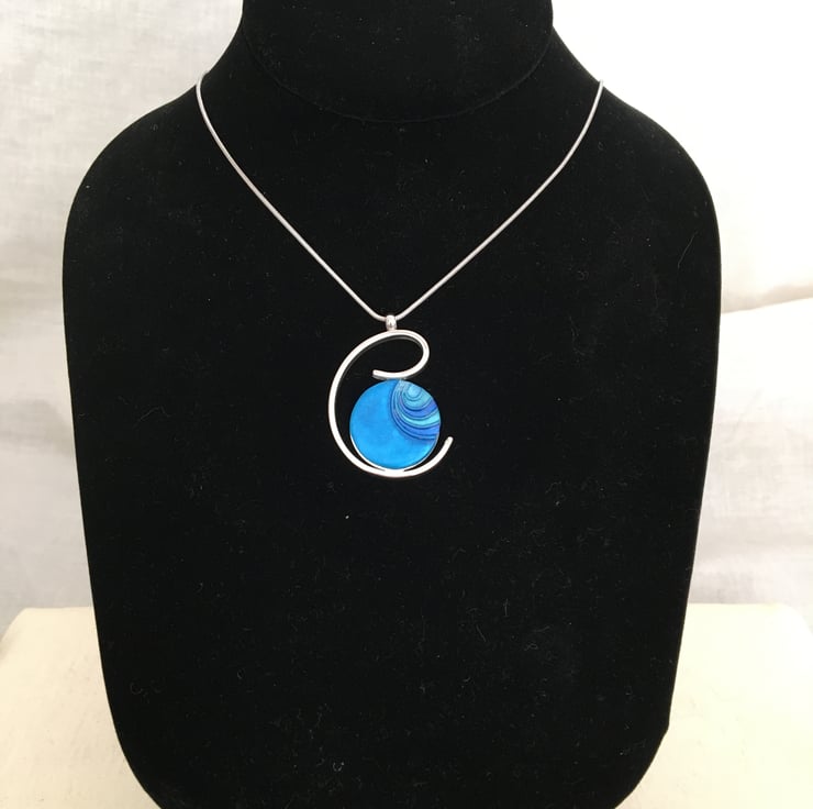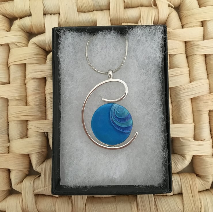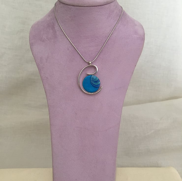 A vivid blue centred pendant in a quality silver plated setting.
