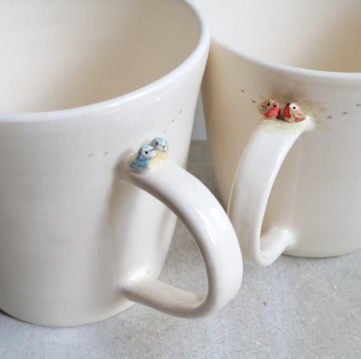 I thought it would be a lovely idea to make a unique cup with two little friendly birds sitting on the handle to make you smile and add some fun to a lovely cup of tea or coffee