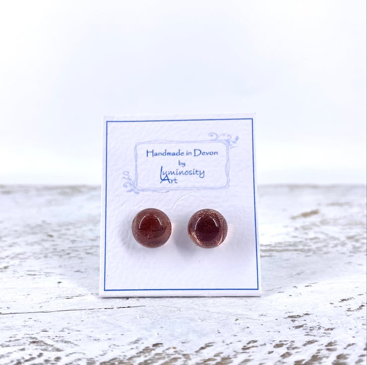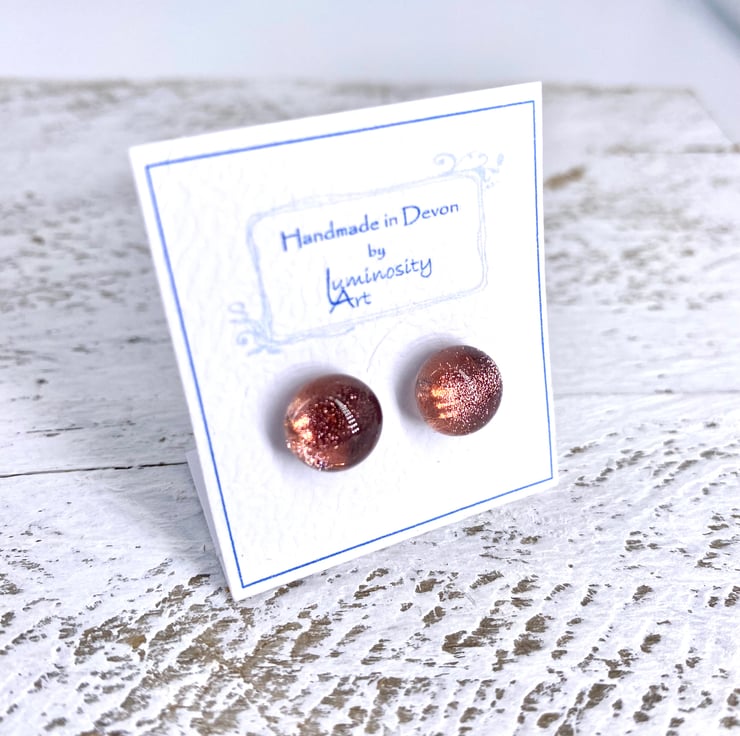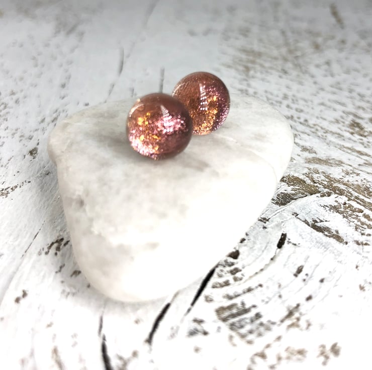 This gorgeous pair of silver and glass earrings are made from a mix of shiny dichroic and a beautiful dusky pink glass.