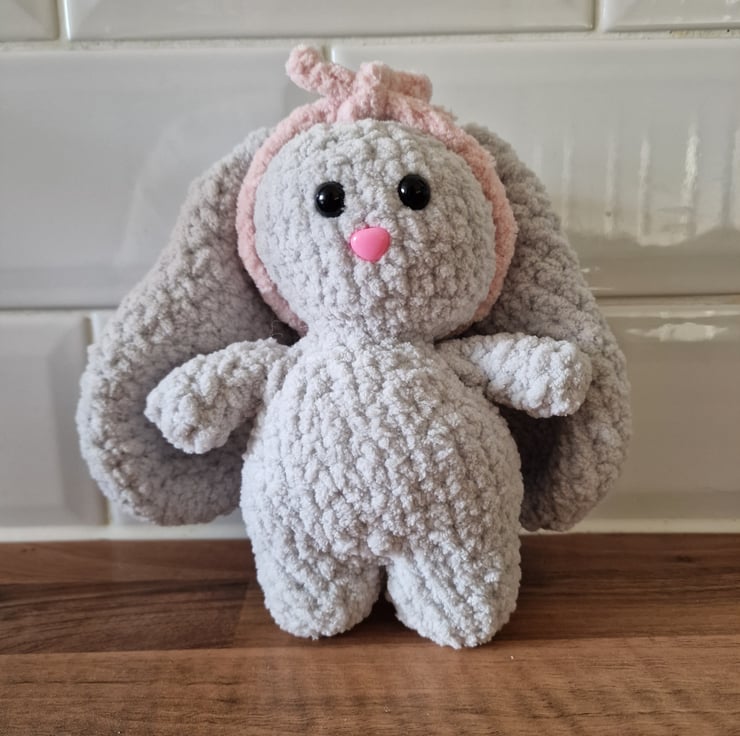 Meet Mr flopsy he is a lovely grey colour he has a pink headband&bushy tail message me if you would like a different colour. He is perfect for anyone that wants to show him off or even as a gift with him being handmade he would make a very unique gift. Unfortunately Mr flospy has safety eyes so I would not recommend to children under 3.