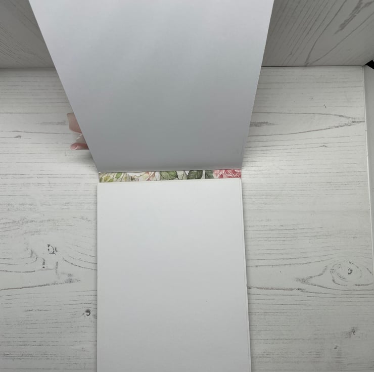 Plain flip notebook, covered in a pretty rose print paper with complementary clip board. Pink pin with pearl beads and a rose charm secured to the bull dog clip. A perfect desk accessory for yourself or to gift.