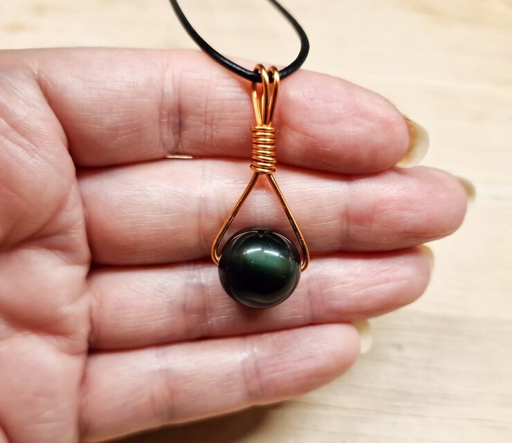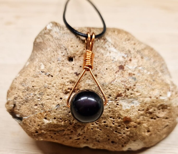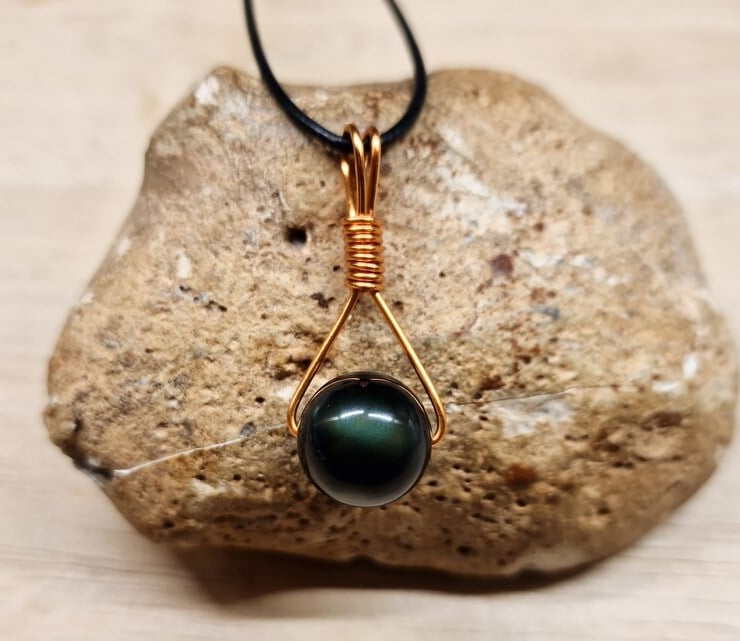 This is a unisex black Obsidian copper pendant necklace. I have wire wrapped this with copper wire.