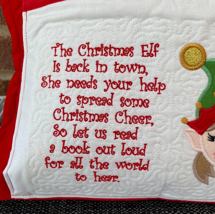 Handmade Christmas Elf Reading Book Pocket Cushion