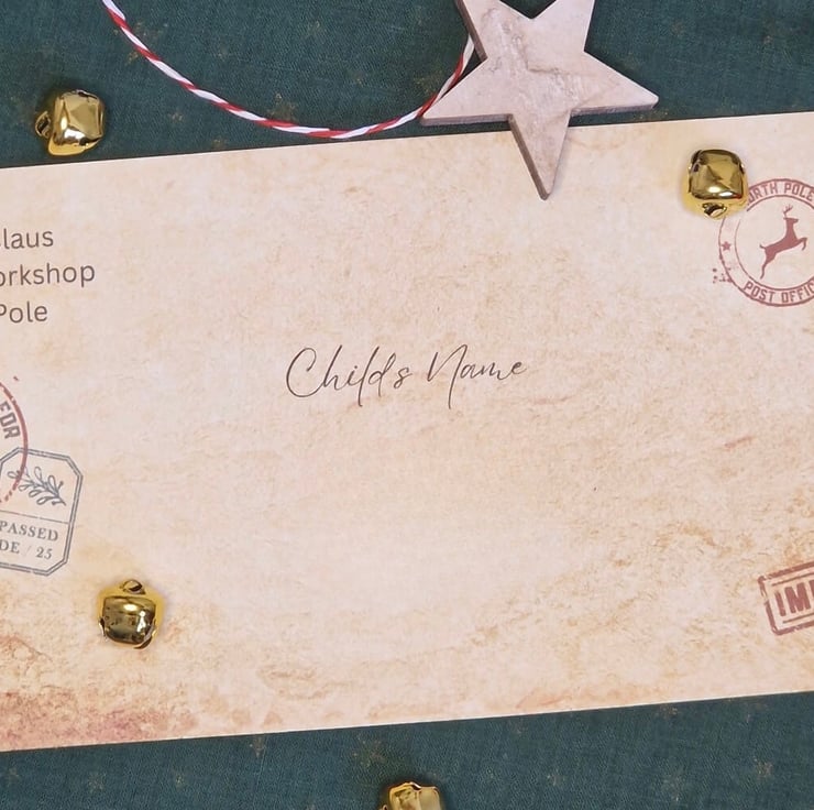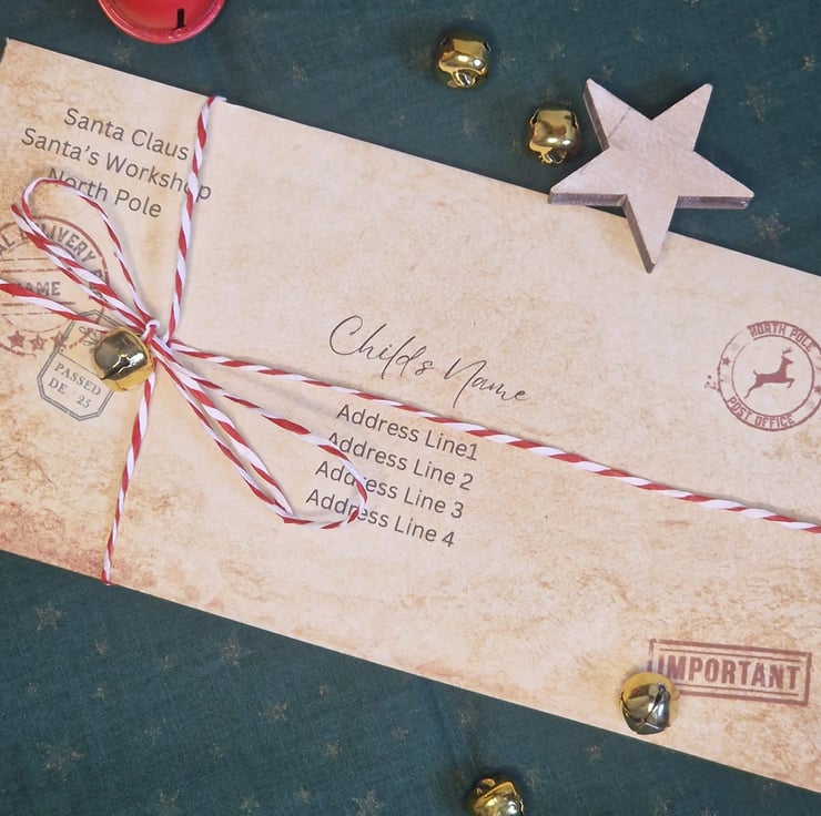 Our letters are printed on 100% recycled A4 vintage-style paper. Each letter comes with a personalised envelope adorned with red and white twine and a mini jingle bell. You can choose to leave the envelope open to add anything else you'd like, or we can seal it before delivery.