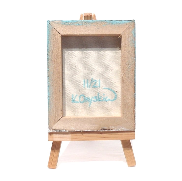 The snowy scene is painted in acrylics on a mini 8cm x 10cm (3.2" x 4") canvas, and is signed and dated on the back. As the canvas is so small it's great to fit on little surfaces and ledges, like a windowsill or bookshelf, and is small enough to fit as a stocking filler.
