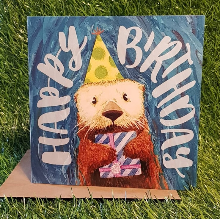 I made this when a client purchasing other cards from me, asked if I had any birthday cards themed on otters. I don't like to disappoint! So, I got to work on a design idea and completed the painting in a short space of time. This was the result of that request!