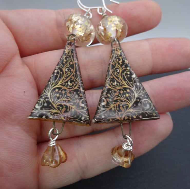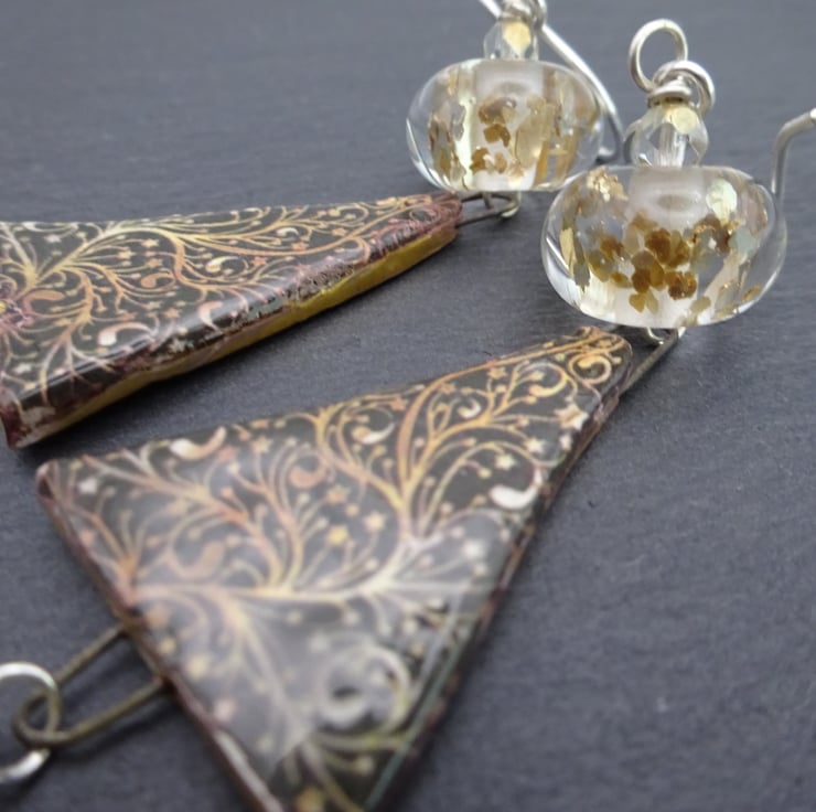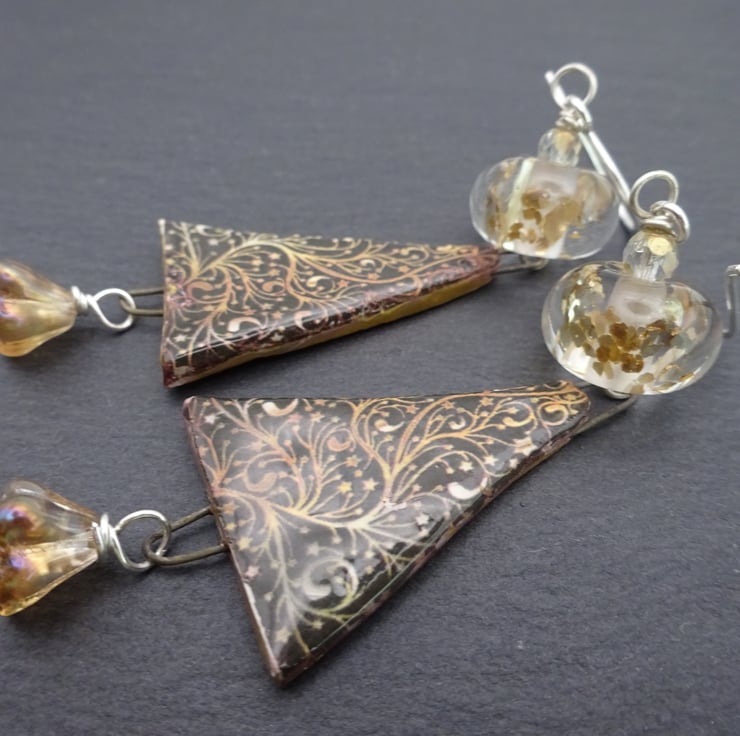 The lampwork beads have been handmade by me using clear glass and gold glitter.