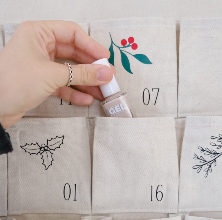 Some inspiration for filling your reusable advent calender: chocolate or small treats, little toys, activity vouchers, quotes or messages, festive accessories such as hair clips, mini books, tea bags or hot chocolate sachets, holiday stickers, charms or jewellery pieces, essential oils, jokes or riddles, scratch cards or even mini bottles of alcohol (a very merry Christmas indeed!).