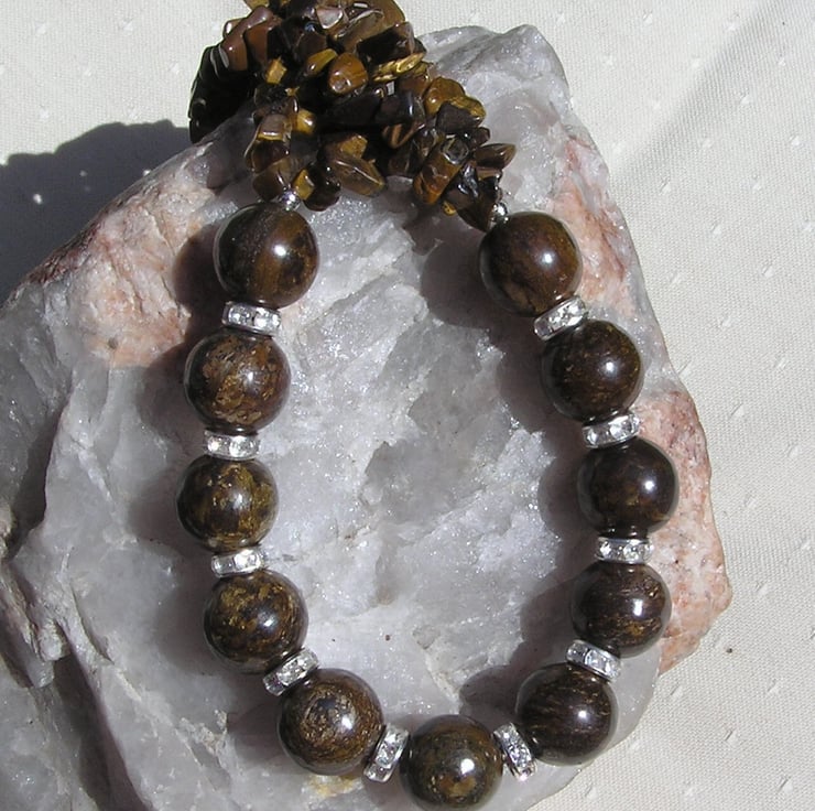 Gold Tigers Eye is known as the 'Confidence Stone' and is a Powerful Protective Amulet closely associated with the Solar Plexus Chakra whilst Bronzite is a Harmonious Stone
