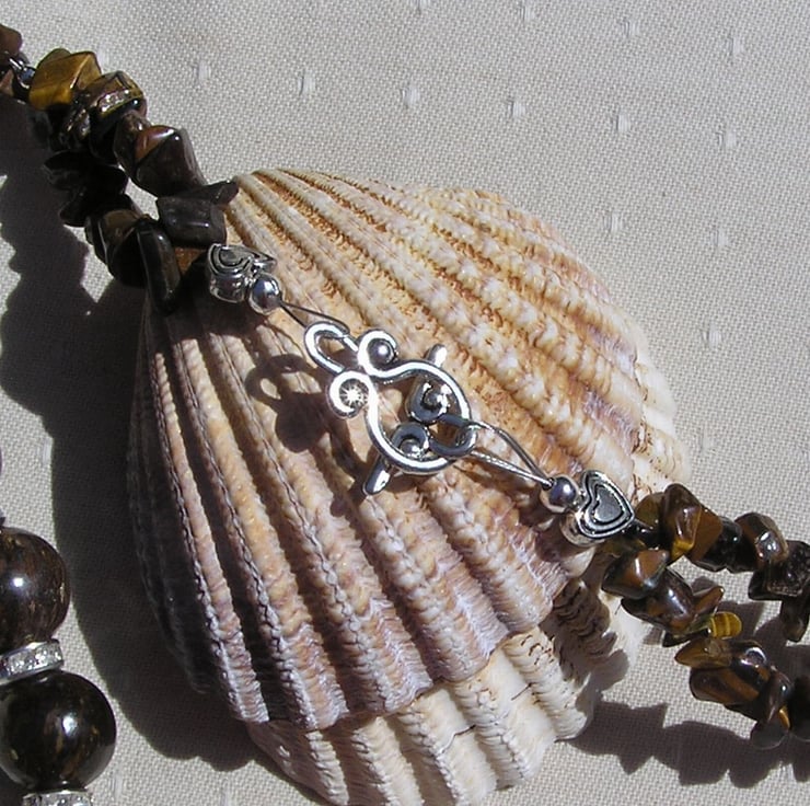 Brown Bronzite & Gold Tiger Eye Crystal Gemstone Statement Necklace