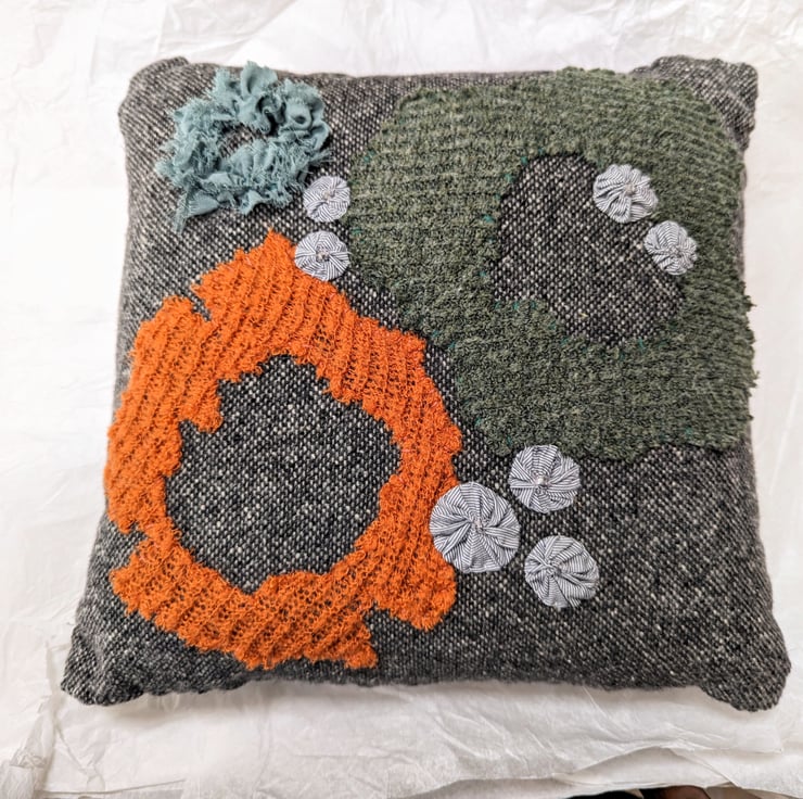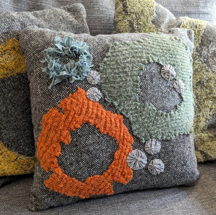 Coastal Dreams Applique Cushion from Recycled Materials with British Wool pads.