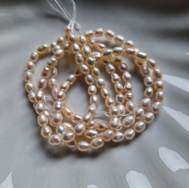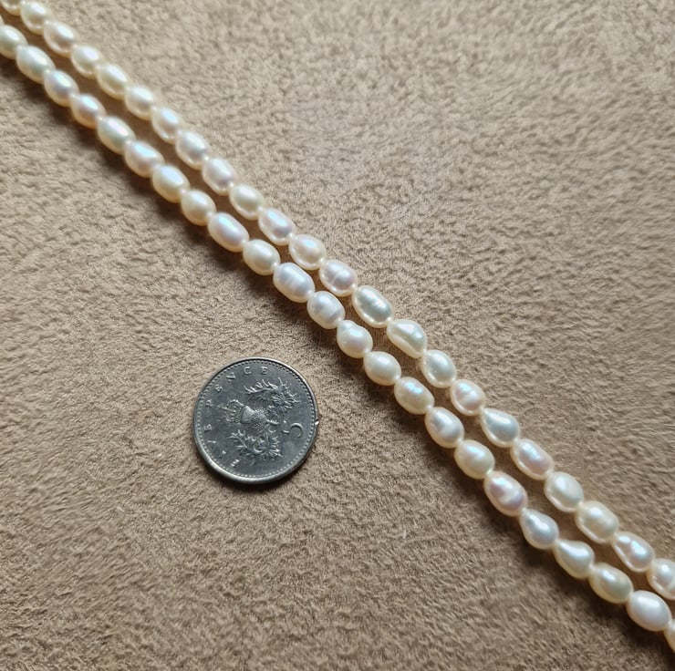 Freshwater Rice Pearls Grade A natural cultured white x 2 strands