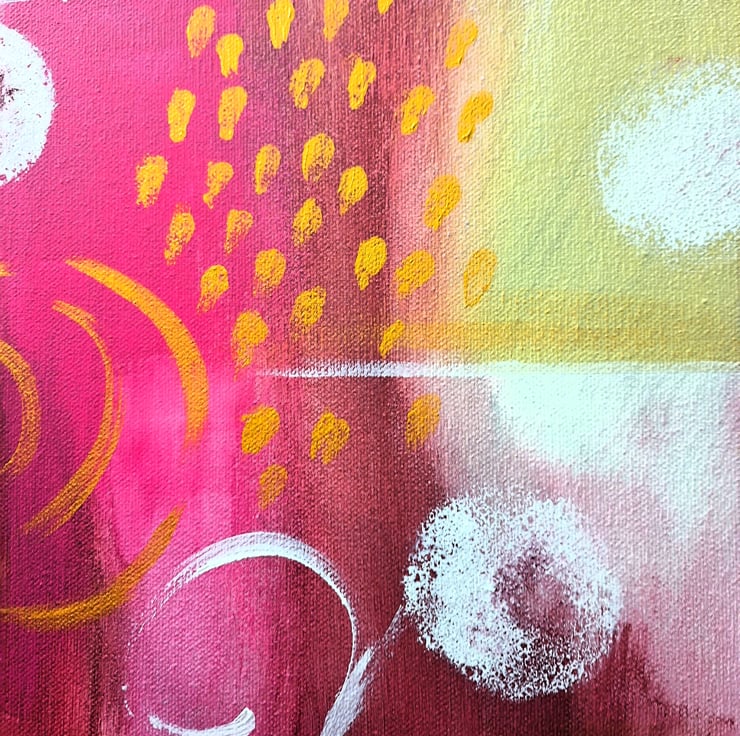 I really enjoyed expressing myself on this painting, trying out various brush strokes, using a palette knife to blend the background or drag colours down, a few swirls and good to go "here come the girls!" I painted a white border on the canvas to accentuate and make the colours pop.