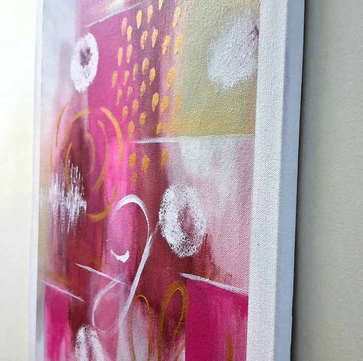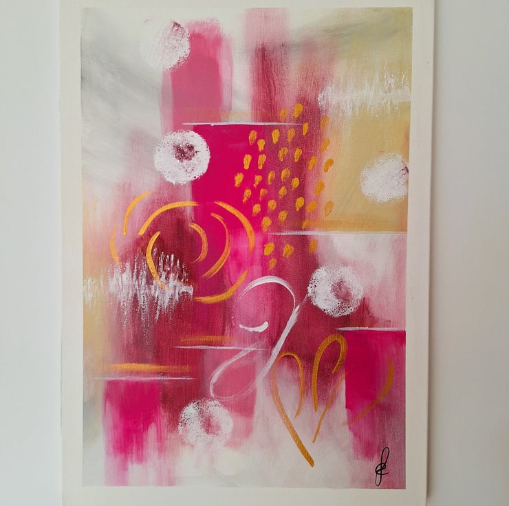 So I used acrylic paints in alcazarin crimson, gold, rose pink, baby pink and titanium white.