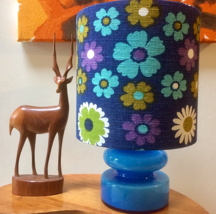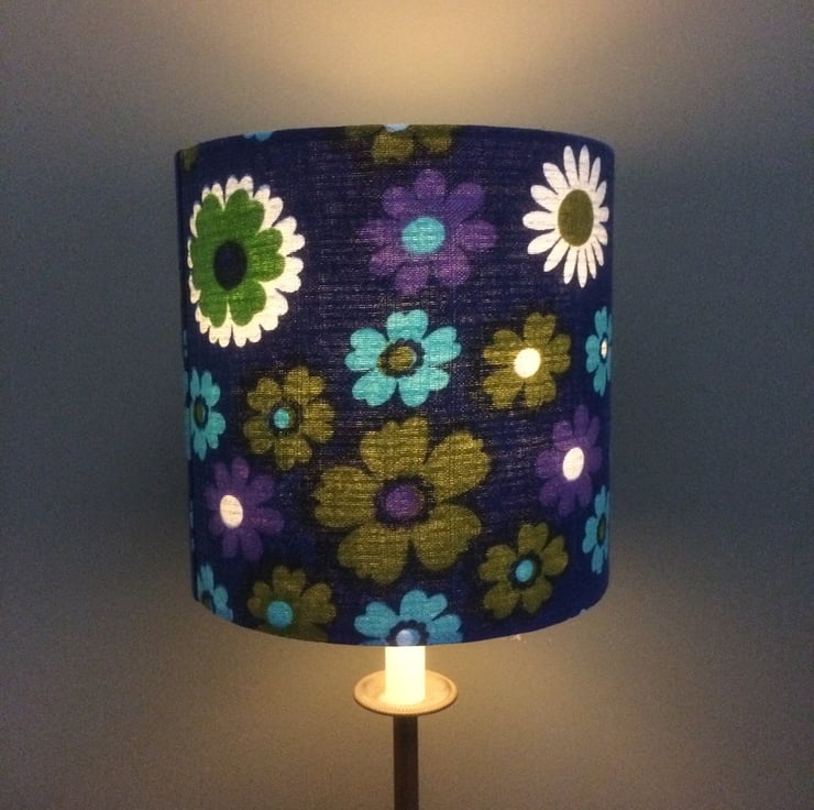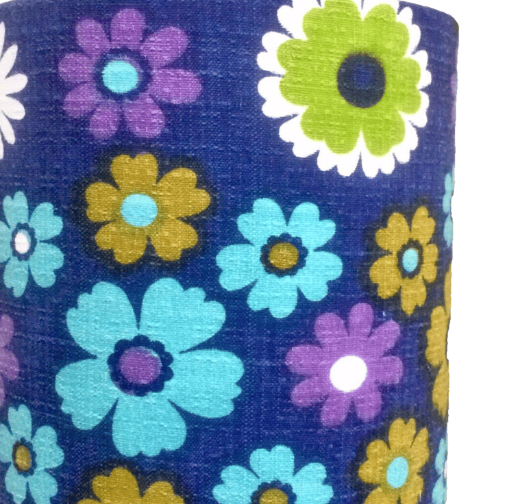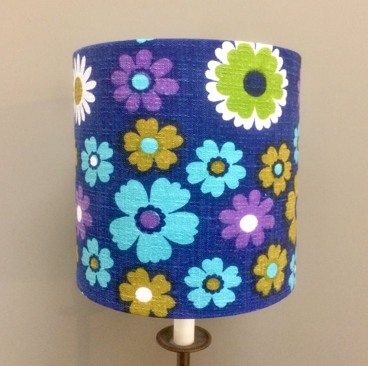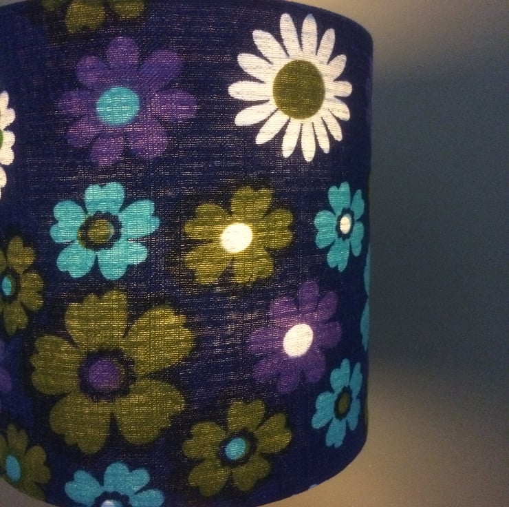 WOW Blue Purple Daisy Floral VIntage 60s 70s Barkcloth Fabric Lampshade - Fab barkcloth fabric of the period but also a great feature in a modern or traditional home.