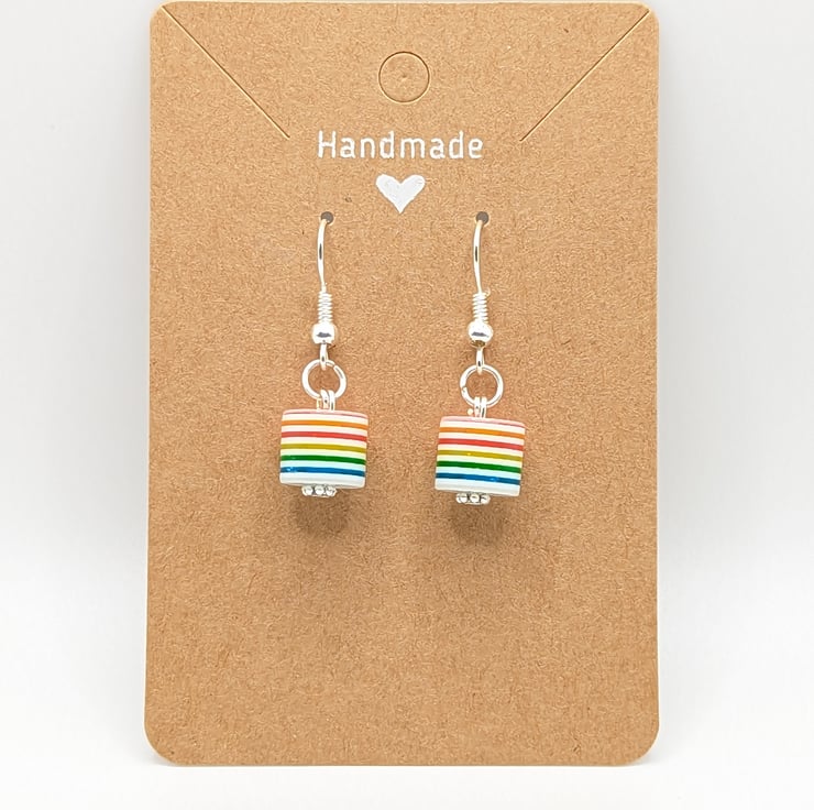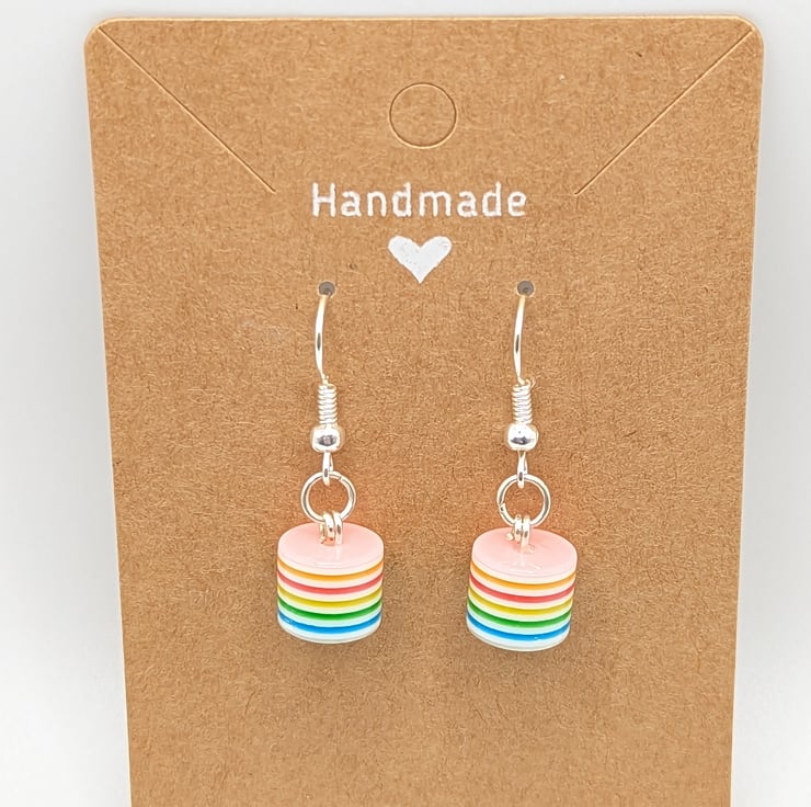 Cute little rainbow coloured earrings with silver plated ear wires. The rainbow beads measure approx 1cm.