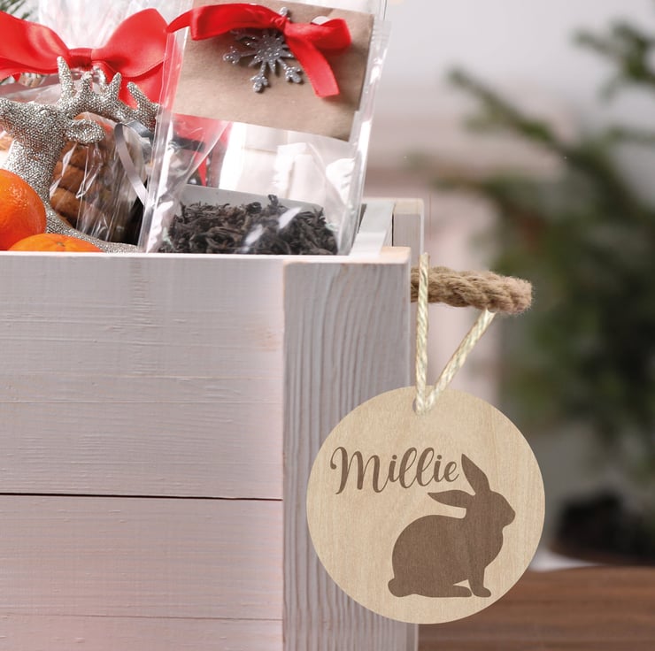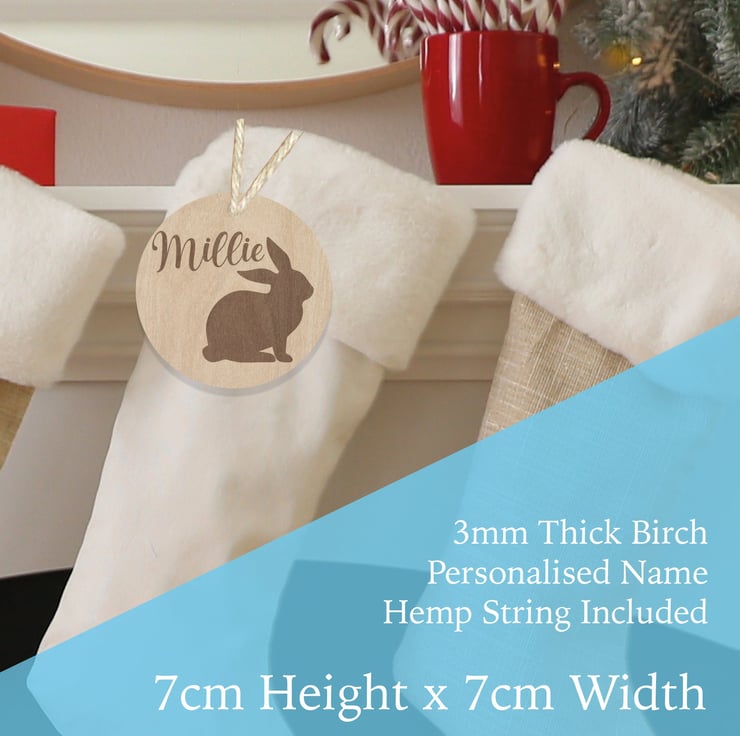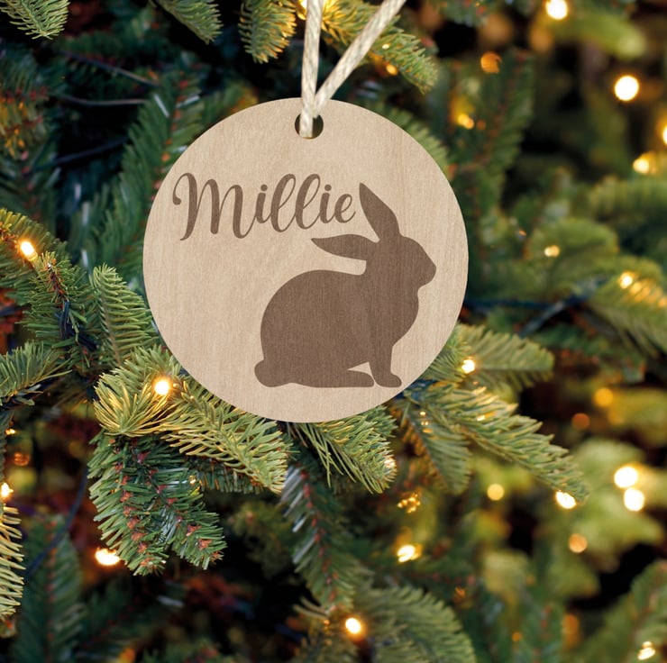 Rabbit engraved, personalised wooden Christmas tree ornament or Gift Tag. The perfect keepsake from someone special.